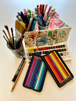 Art therapy group online is available to all who suffer from endometriosis & other gynaecological disorders (adenomyosis / fibroids). You do not have to be good at art, and you can use whatever art materials you may have to hand at home, even if it is just a pencil and paper. You do need to be in a confidential space, but other than that, just bring yourselves and an open mind, and stay curious 😊